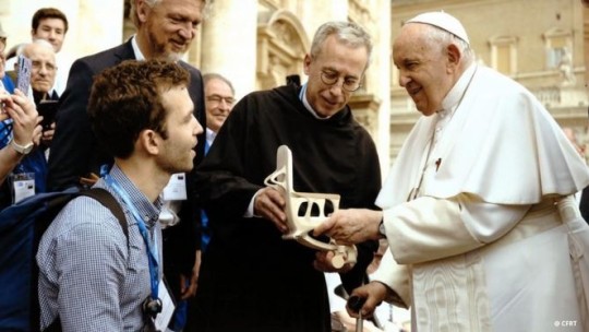 À l’occasion de l’audience publique auprès du pape du mardi 27 mars 2024 au Vatican, le CFRT a pu bénéficier d’une rencontre exceptionnelle avec le pape François. Frère Thierry Hubert lui a présenté l’émission du Jour du Seigneur, la plus vieille émission du PAF, ainsi que nos autres émissions produites par le CFRT, Tous Frères et Générations Laudato Si’. Le pape s’est réjoui de savoir que ses encycliques ont inspiré 2 émissions diffusées sur le service public, France Télévisions et TV Monaco.